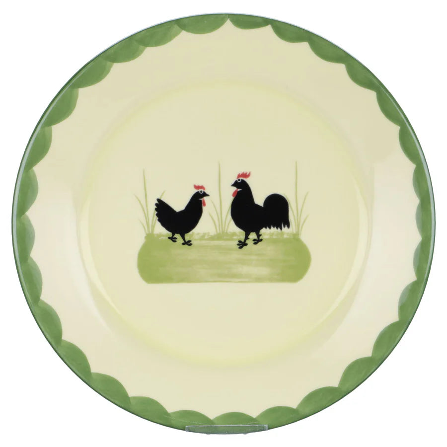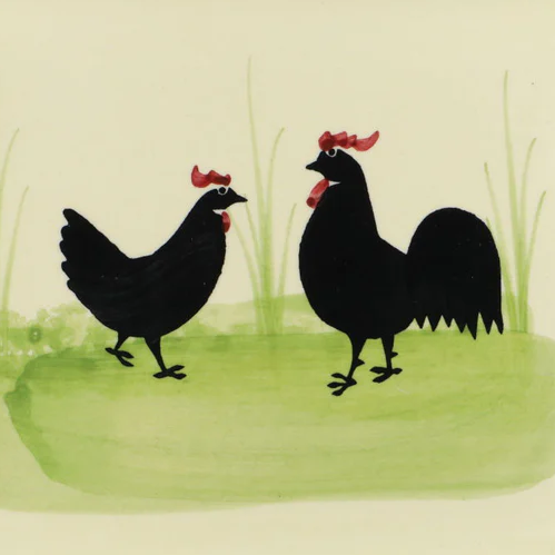 Das Geschirr der Hahn & Henne-Serie besteht aus Steingut, einem Gemisch aus Ton, Quarz und Mineralien. Nach dem Gießen in Gipsformen und dem Brennen bei niedrigen Temperaturen wird jedes Stück von Hand bemalt und glasiert. Diese sorgfältige Herstellung verleiht dem Geschirr seine Robustheit und hohe Qualität.