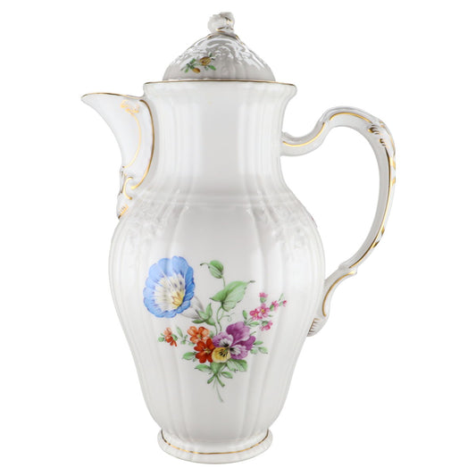 KPM Berlin Rocaille I.Wahl Bunte Blume mit Goldrand Dekor 36Kaffeekanne