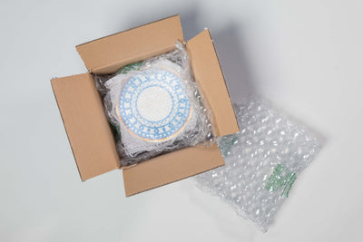 Es ist wichtig, dass jeder Teller einzeln in Luftpolsterfolie oder etwas vergleichbarem verpackt wird. Anschließend können Sie mehrere Artikel in einen passenden Karton verpacken. Die Artikel sollten nicht zu viel Luft haben, füllen Sie entsprechende Hohlräume idealerweise mit Zeitungspapier oder ähnlichem auf. Wir empfehlen nicht mehr als maximal 8 Teller in einem Karton zu verpacken.