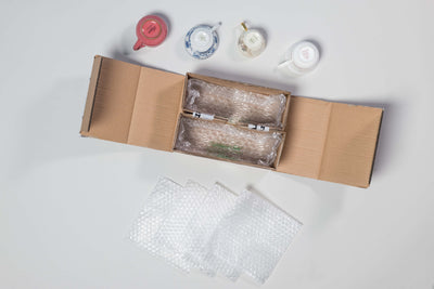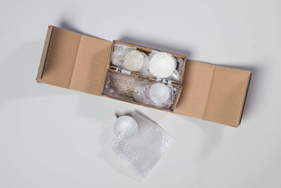 Nutzen Sie entweder passende kleine Kartons und wickeln jedes Glas vorher in Seidenpapier, Zeitungspapier oder Noppenfolie ein. Anschließend packen Sie die einzelnen Kartons zusammen in einen großen Umkarton. Mögliche Zwischenräume füllen Sie am besten mit Zeitungspapier oder ähnlichem aus. Alternativ wählen Sie eine größere Noppenfolie und wickeln jedes Glas gut geschützt einzeln ein und verpacken dann mehrere Gläser in einen passenden Karton. Auch hier empfehlen wir nicht mehr als 8 Gläser zusammen in einem Karton zu verpacken.