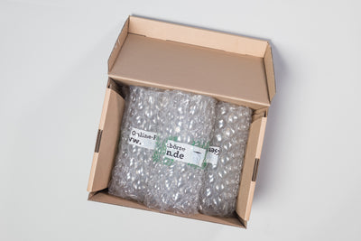 Das Karton in Karton Verpackungsprinzip sorgt für einen sicheren Versand. Verteilen Sie dazu die Einzelkartons in einem größeren Umkarton. Achten Sie bitte darauf Hohlräume möglichst zu vermeiden oder ggf. mit Zeitungspapier oder Füllmaterial aufzufüllen. Bitte wählen Sie eine sinnvolle Paketanzahl. Als Richtwert gilt, ein Paket sollte nicht mehr als 10 kg wiegen. Bitte vermeiden Sie allerdings eine unnötig hohe Anzahl an Versandmarken.