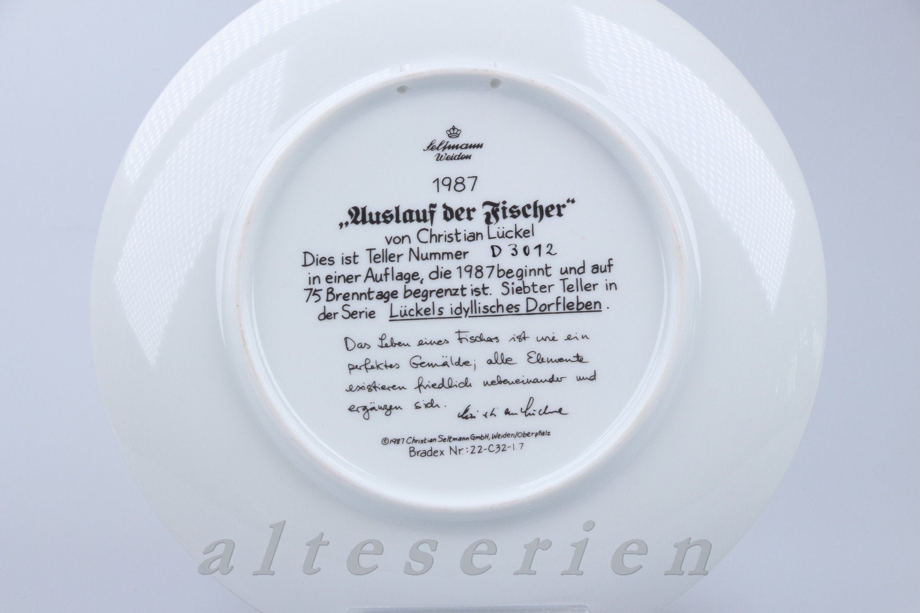 Sonstiges Motiv: Auslauf der Fischer - 1987; mit Löchern im Porzellan zur Aufhängung, keine Haken o.ä.