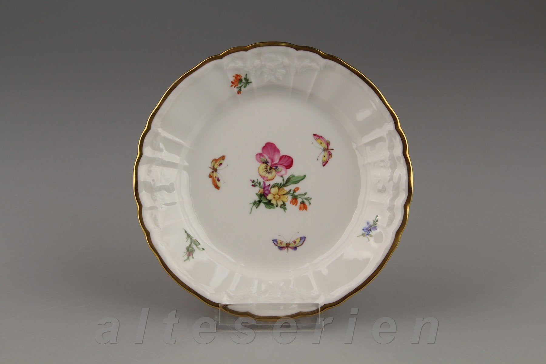 KPM Berlin Rocaille I.Wahl Bunte Blume mit Goldrand Dekor 36