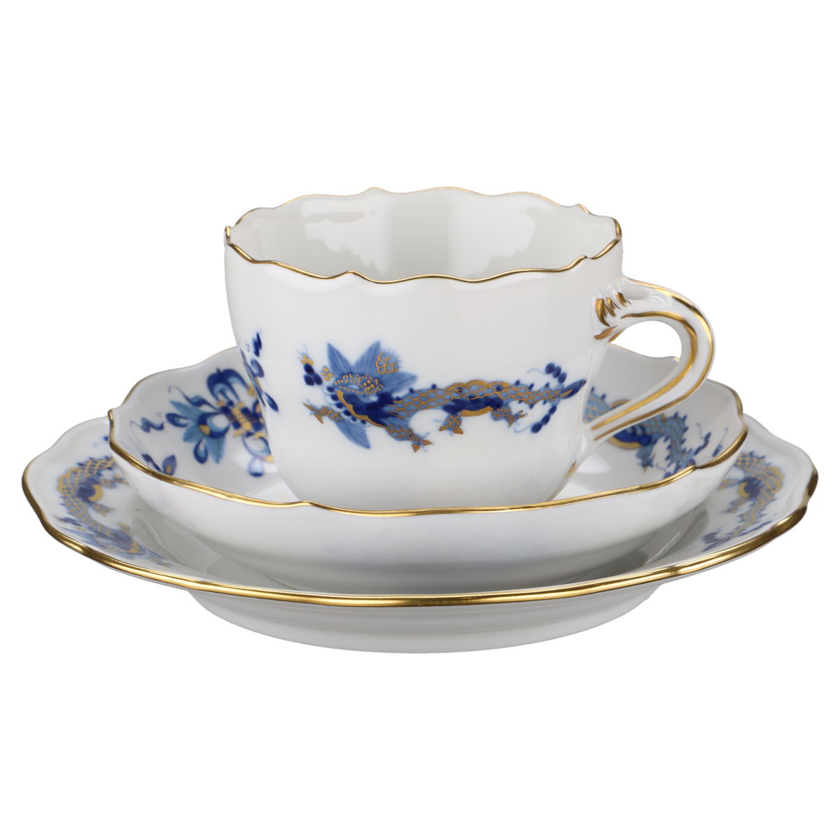 Meissen Neuer Ausschnitt I.Wahl Reicher Drache blau / Gold geschuppt