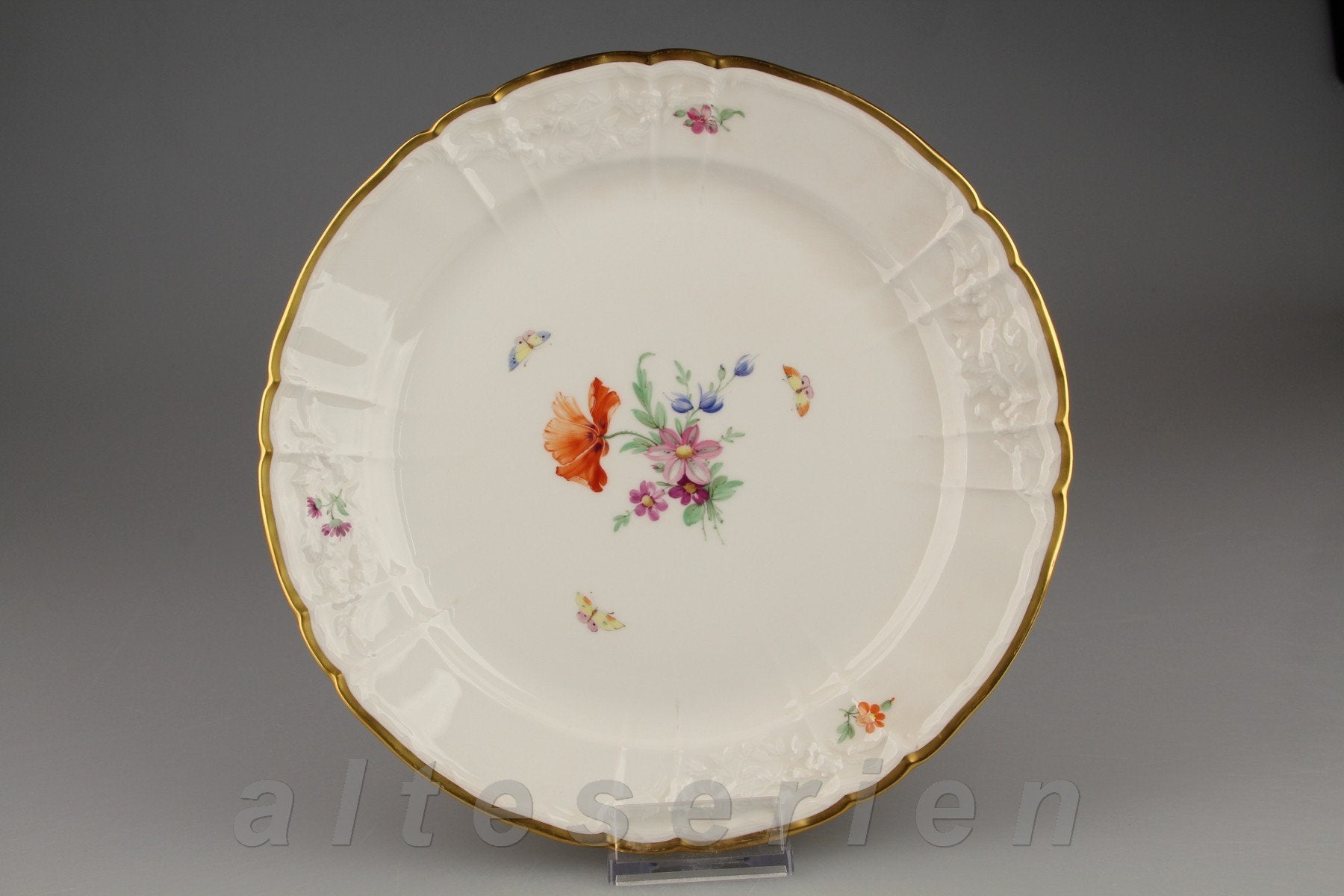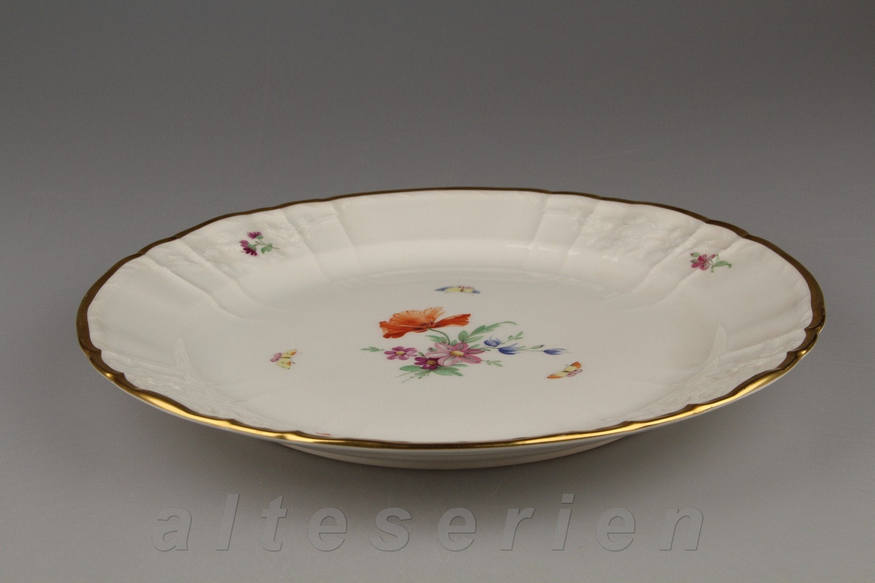 KPM Berlin Rocaille I.Wahl Bunte Blume mit Goldrand Dekor 36
