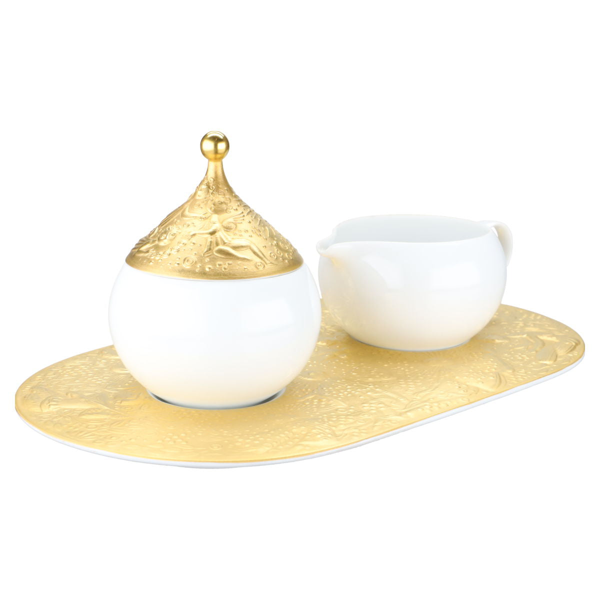 Tablett mit Milchkännchen und Zuckerdose