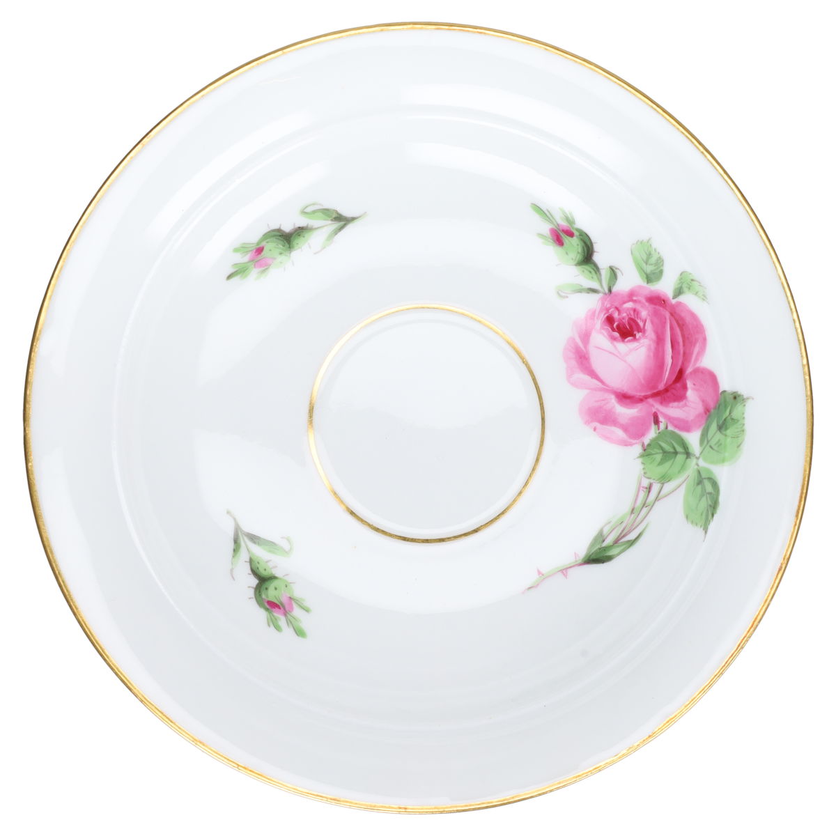 Meissen Schwanenhals I.Wahl Rote Rose mit Goldrand