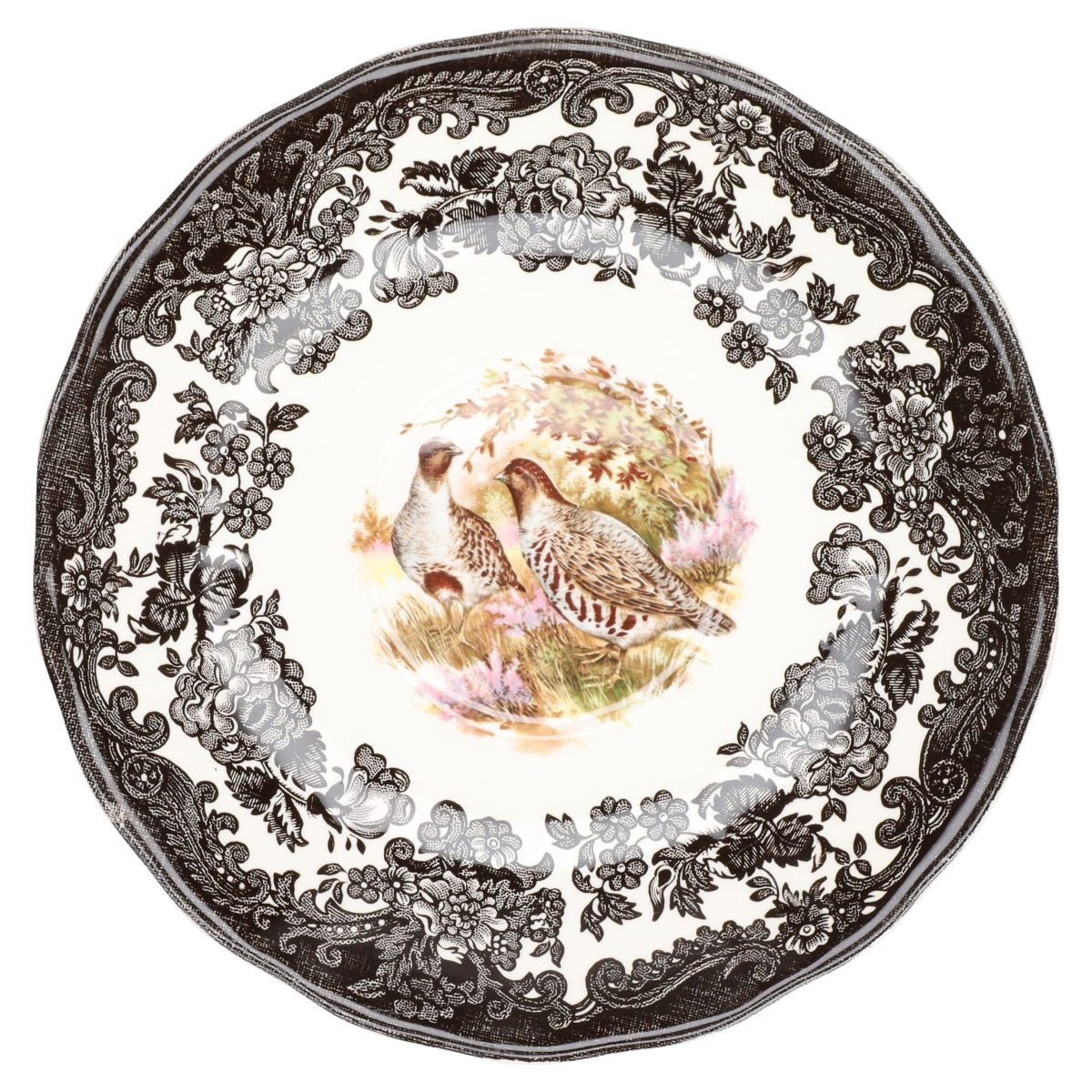 Untertasse für Suppe mit Spiegel Rebhühner