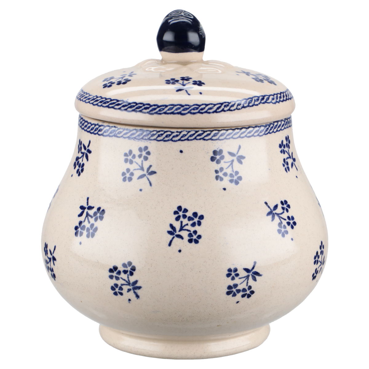 Zuckerdose mit blauen Knauf